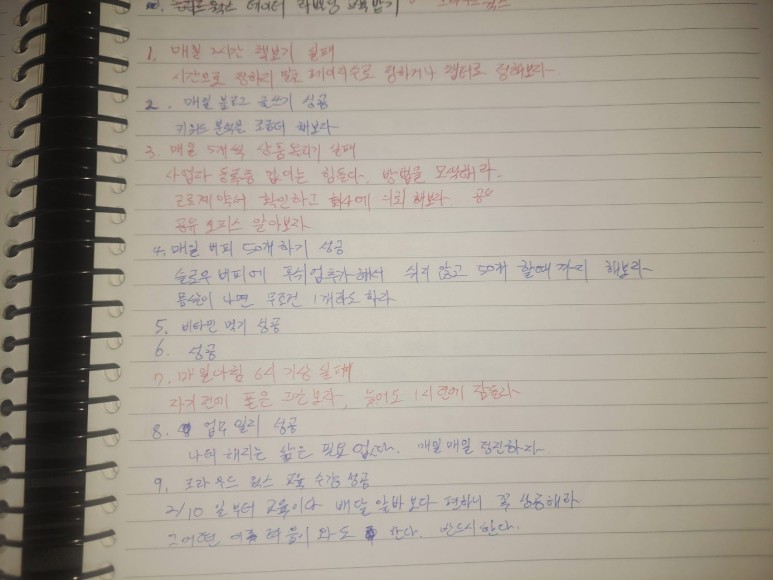 거울 유전자에 자극이 되었는지 구석에 처박혀 있던 작심 3일의 흔적이 남았는 스프링 노트를 꺼내었다.